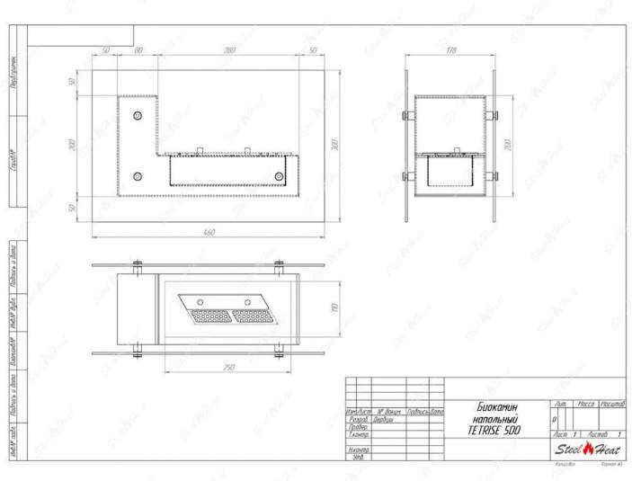 Биокамин напольный SteelHeat TETRISE 500 черный