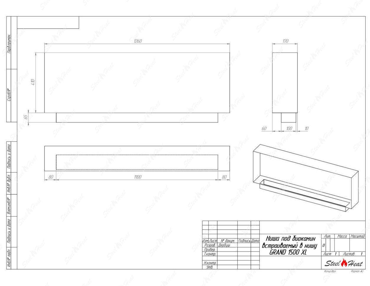 Встраиваемый Биокамин SteelHeat GRAND-H 1500 XL предназначен для встраивания в глухие ниши из гипсокартона, кирпича, пеноблоков, бетона.