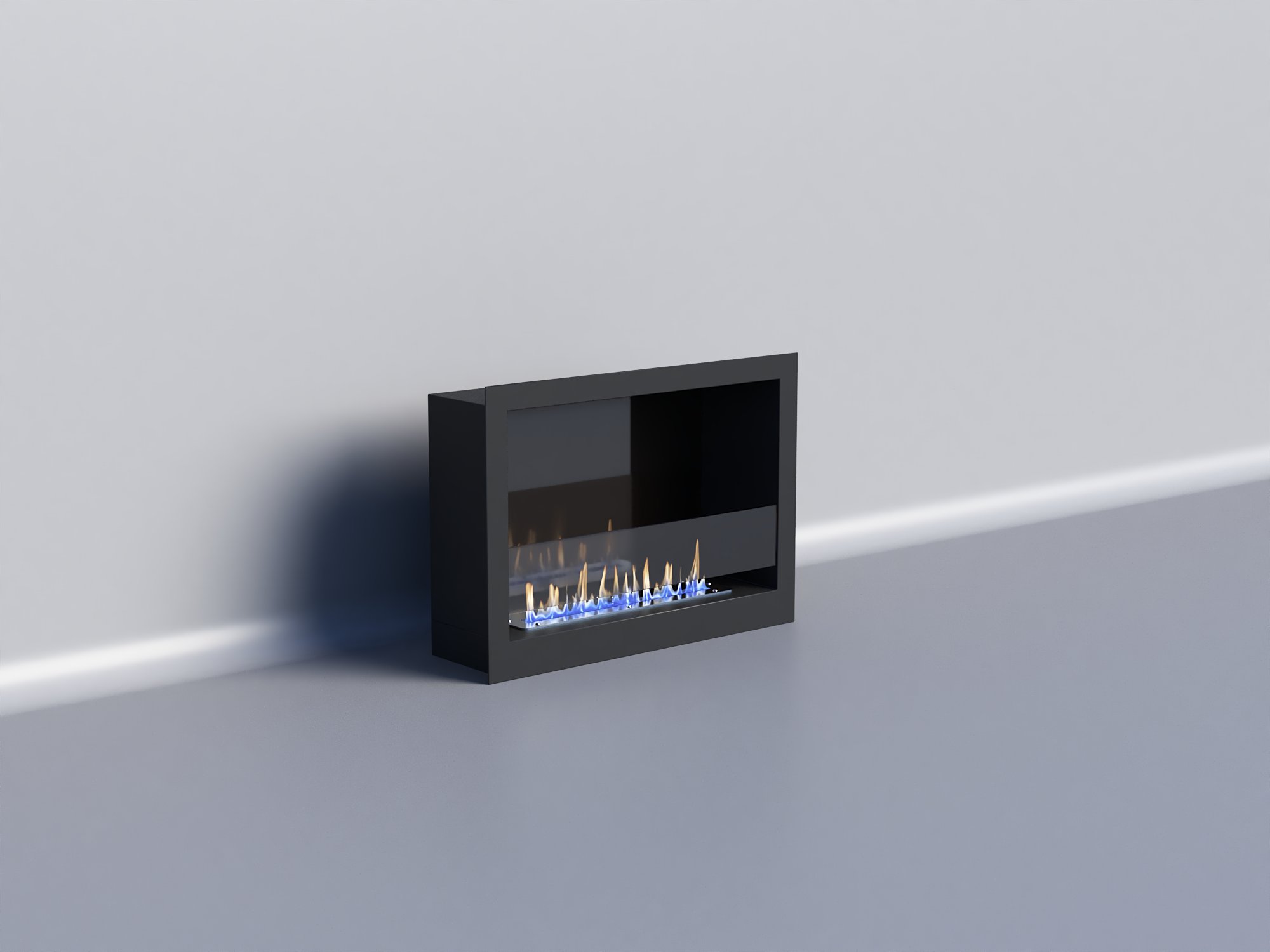 Очаг – это емкость куда заливается жидкое топливо. Емкость внутри заполняется керамическим материалом, который впитывает биотопливо, и в случае опрокидывания камина топливо не разливается. За счет этого конструкция стала полностью пожаробезопасной. Очаг встраивается в корпус из стали, который окрашивается специальной термостойкой краской, или же в заранее подготовленную нишу, изготовленную из негорючих материалов.