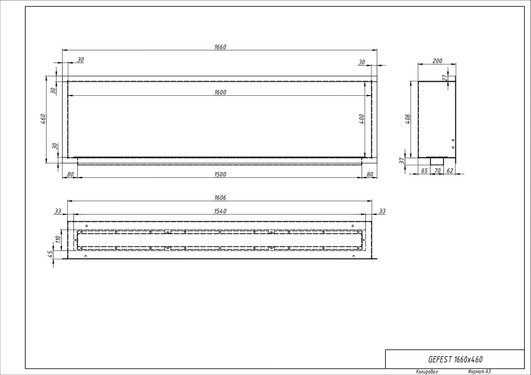 Встраиваемый биокамин «Гефест 1660V» изготовлен из стали и нержавеющей стали, окрашен термостойкой порошковой краской.