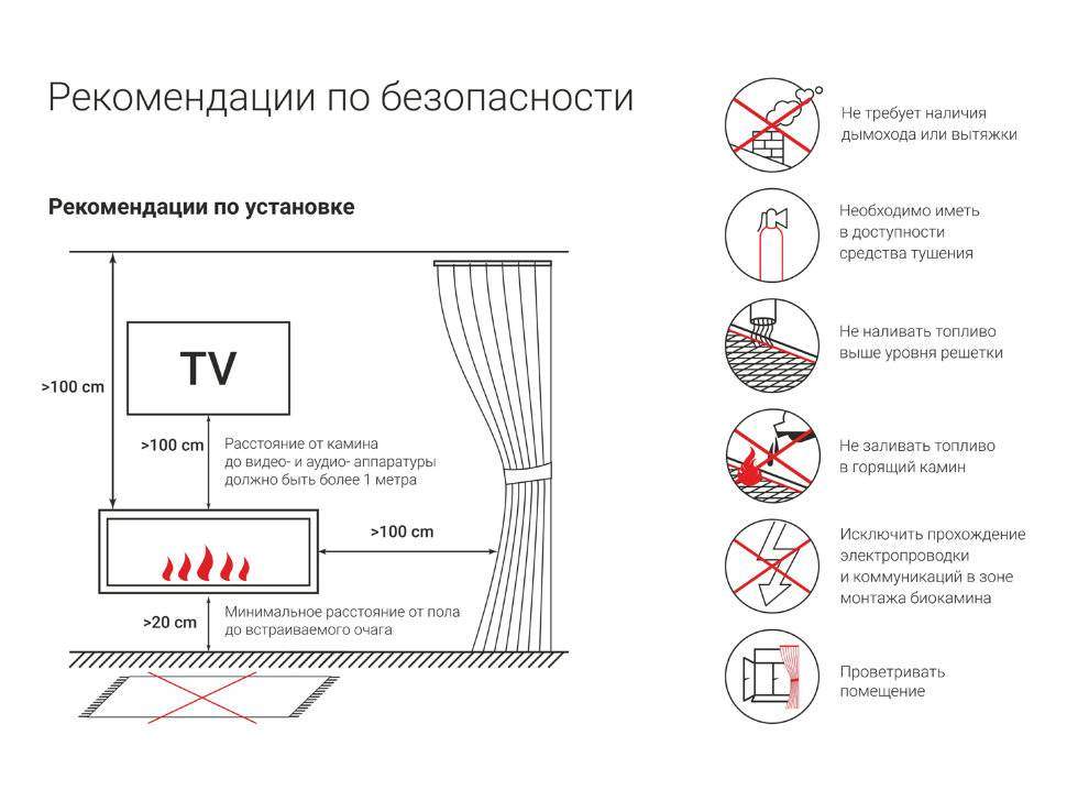 Очаг – это емкость куда заливается жидкое топливо. Емкость внутри заполняется керамическим материалом, который впитывает биотопливо, и в случае опрокидывания камина топливо не разливается. За счет этого конструкция стала полностью пожаробезопасной. Очаг встраивается в корпус из стали, который окрашивается специальной термостойкой краской, или же в заранее подготовленную нишу, изготовленную из негорючих материалов.