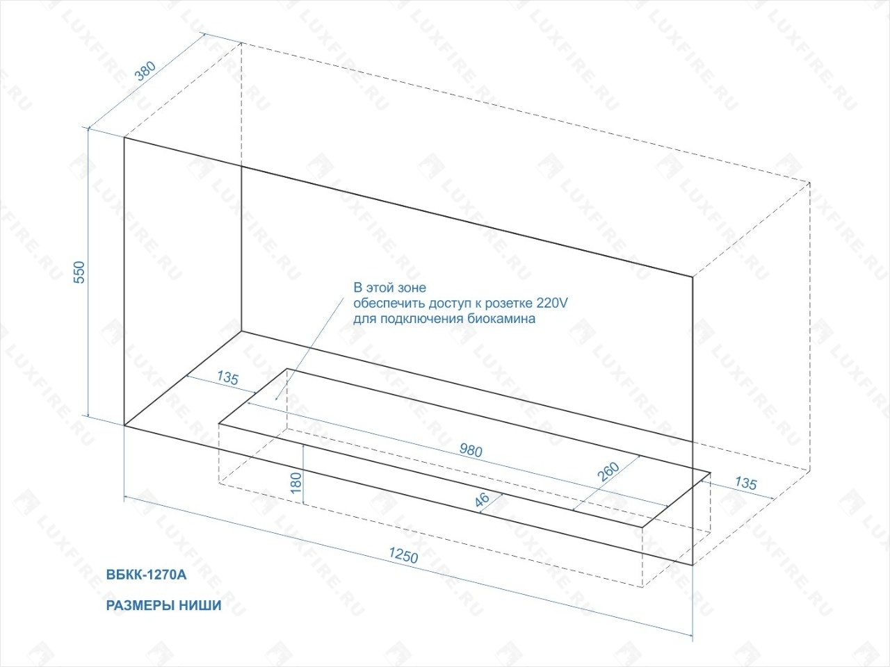 Встроенный автоматический биокамин Lux Fire Кабинет 1270 А