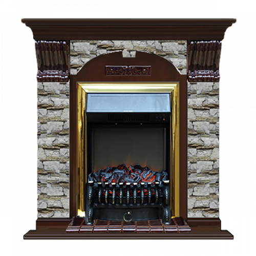 Каминокомплект Glenrich Арочный Алтай (дуб)+Fobos Brass