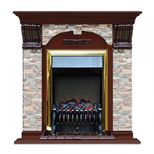 Каминокомплект Glenrich Арочный Грот цветной (красное дерево)+Fobos Brass