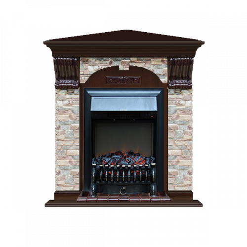 Каминокомплект Glenrich Арочный Грот цветной угловой (дуб)+Fobos Black