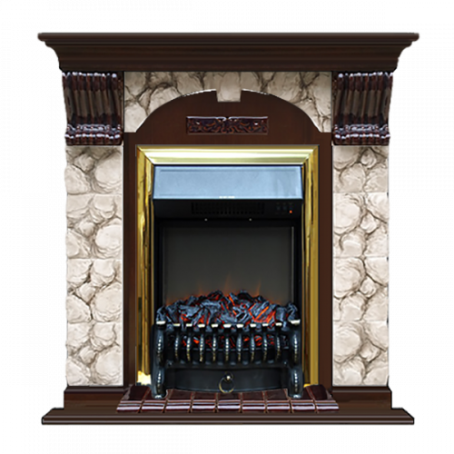 Каминокомплект Glenrich Арочный Карелия (дуб)+Fobos Brass