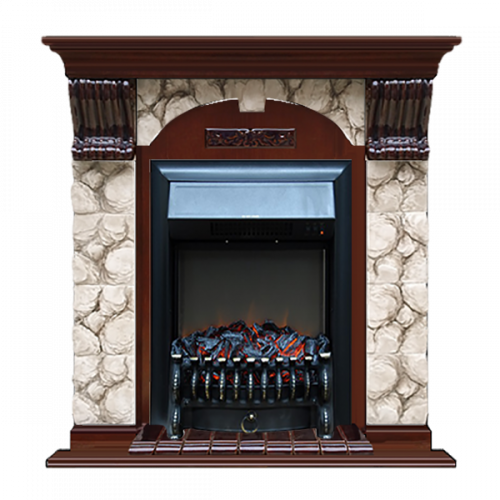 Каминокомплект Glenrich Арочный Карелия (красное дерево)+Fobos Black