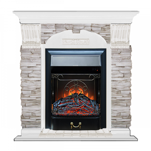 Каминокомплект Glenrich Арочный Мисхор (белый)+Majestic Black