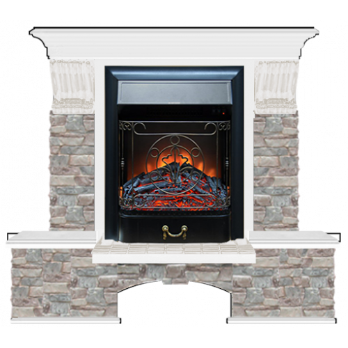 Каминокомплект Glenrich Бостон К Грот цветной (белый)+Majestic Black