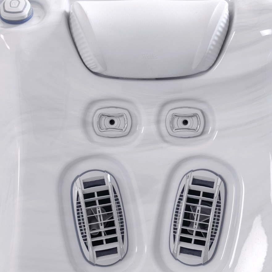 Оптимизированный поток воды Wellis. Наш усовершенствованный электрический водоотвод обеспечивает на 75% более высокое давление гидромассажа. Потребление энергии на 45% ниже по сравнению с другими системами управления предыдущих моделе.